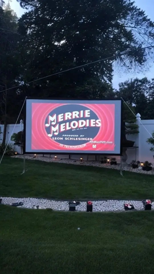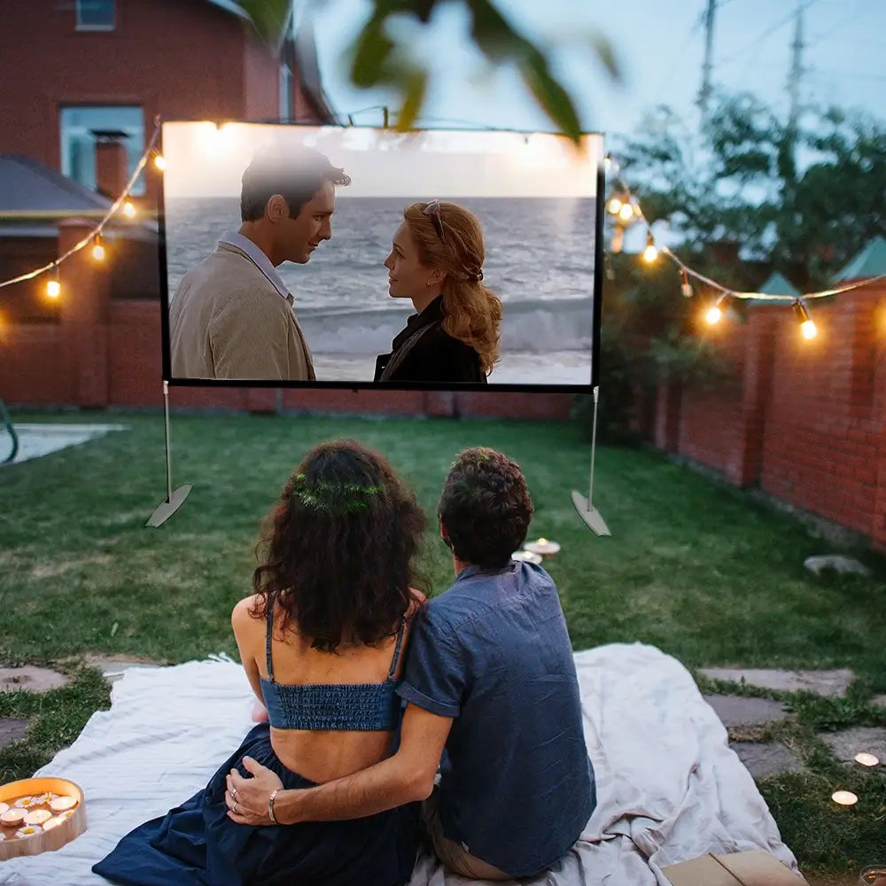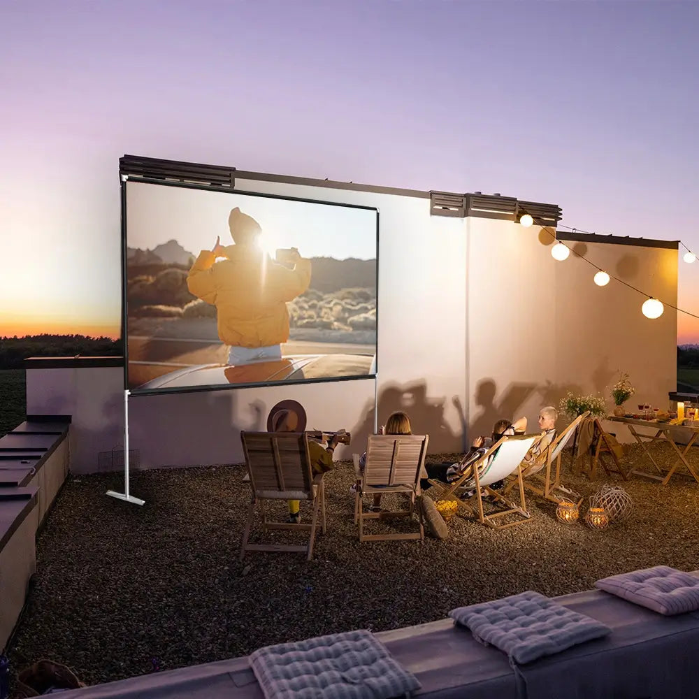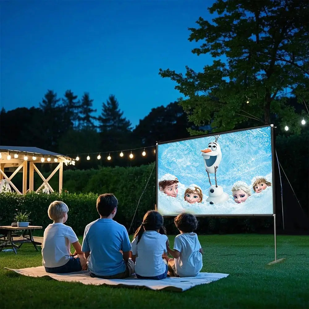 It’s incredibly easy! The snap-together frame design means there are no tools, no screws, and no hassle—just unfold, assemble, and start watching in less than a minute. Perfect for indoor and outdoor setups, whether you’re hosting a backyard movie night or setting up a home theater.