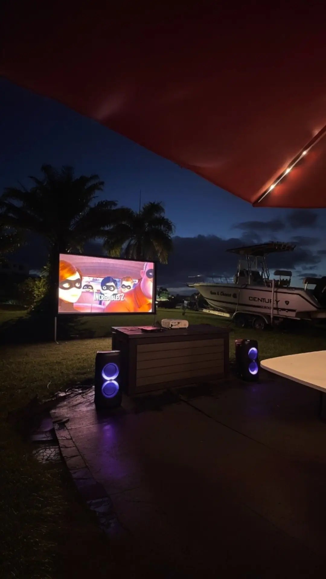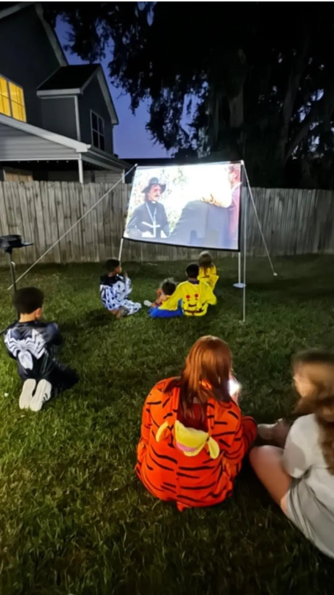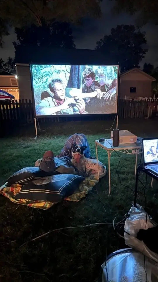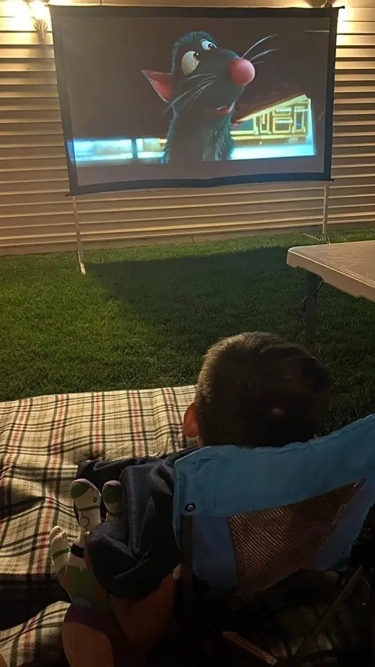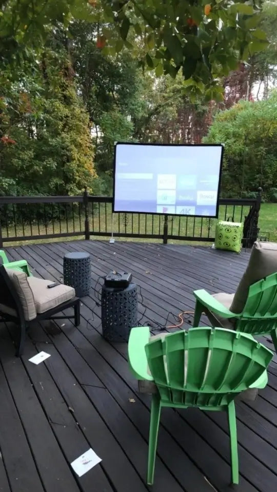 It’s incredibly easy! The snap-together frame design means there are no tools, no screws, and no hassle—just unfold, assemble, and start watching in less than a minute. Perfect for indoor and outdoor setups, whether you’re hosting a backyard movie night or setting up a home theater.