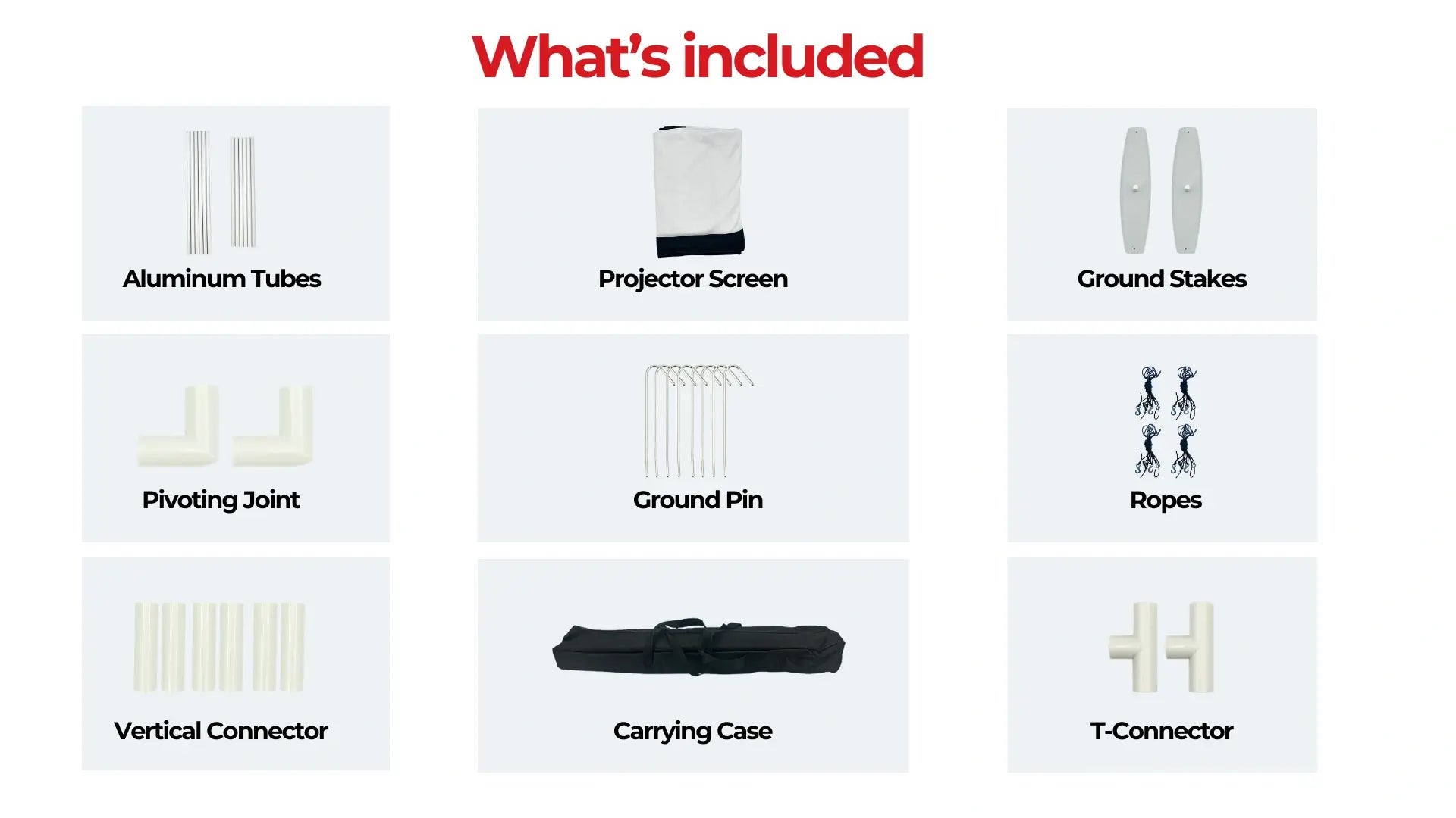 Yes! Your purchase includes everything you need—the screen, stand, ground stakes, setup guide, and a carrying bag for easy storage and portability. Unlike other brands that require extra purchases, this package is ready to use straight out of the box.