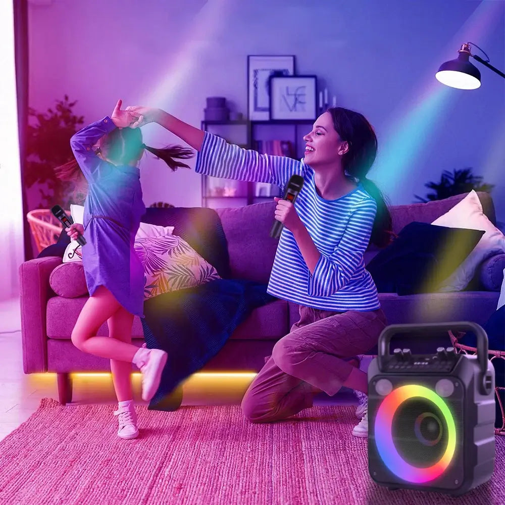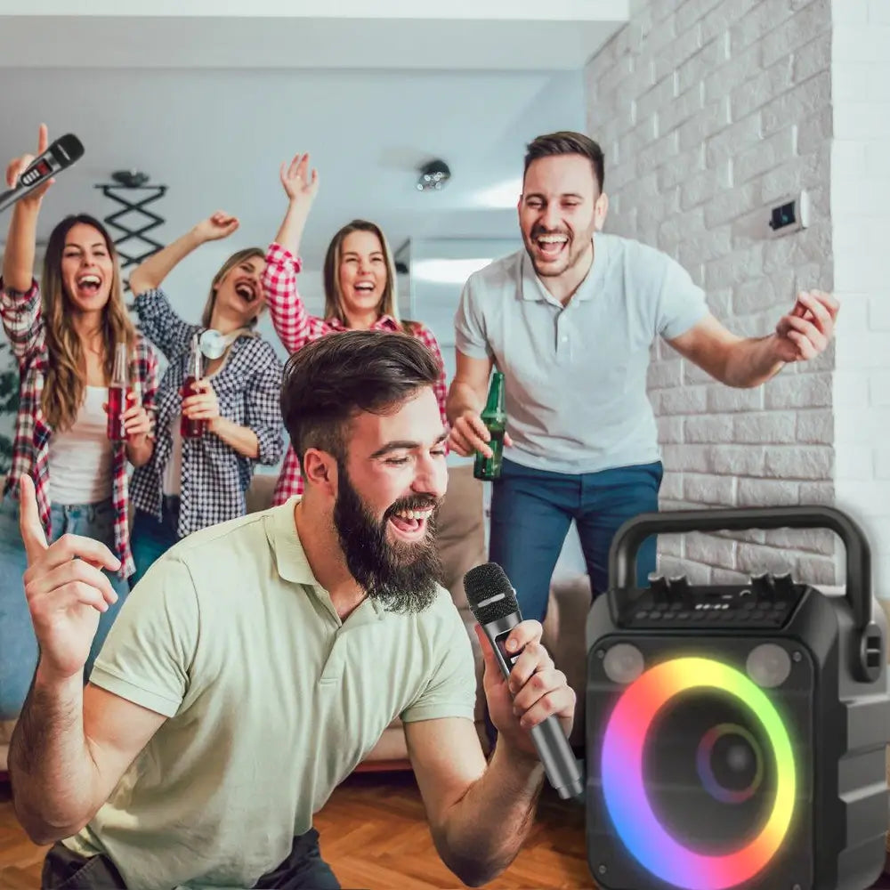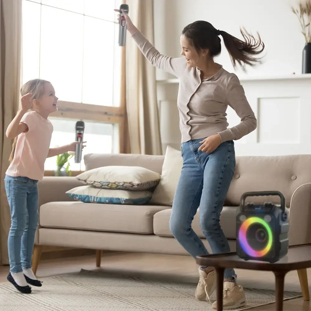 Absolutely! The 15W speaker delivers deep bass and room-filling sound that’s perfect for home parties, backyard gatherings, or even outdoor use. Whether you’re singing solo or belting out duets, it provides clear, powerful audio that keeps the energy high.